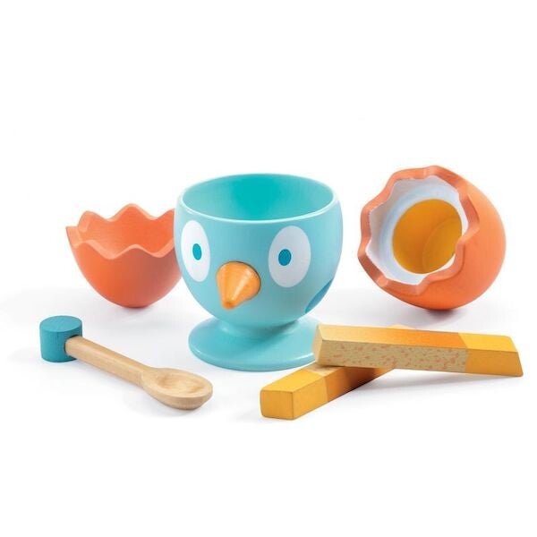 Met dit leuke gekookte ei Coco van Djeco maak je een heerlijk ontbijtje. De bovenkant kan eraf en binnenin kun je lekker dippen met de houten broodstengels. Leuk extraatje bij de kinderkeuken.