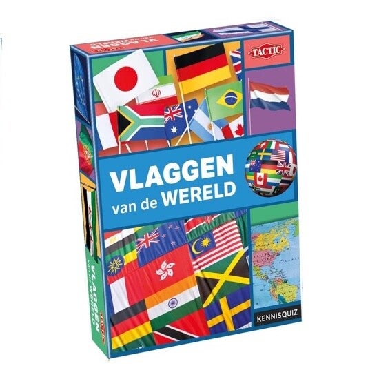 Test jouw kennis van de vlaggen van de wereld met dit educatieve kaartspel vlaggen van de wereld. Vlaggen hebben hun eigen kenmerkende code. Op de Olympische Spelen, bij Wereldkampioenschappen, in televisie programma's, op reis en tijdens internationale evenementen herken je de landen aan hun vlaggen. Hoe goed ken jij alle vlaggen van de wereld? Het spel kan op 3 verschillende manieren worden gespeeld, zodat de jongste spelers vanaf 6 jaar het spel ook kunnen spelen.